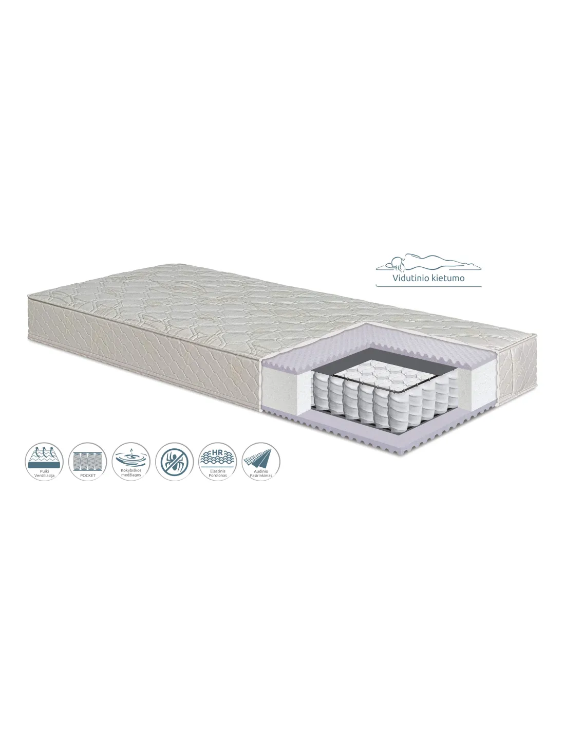 - Dvipusis, pagamintas iš Pocket spyruoklių bloko, abiejose pusėse gaubiamo HR profiliuoto putų poliuretano(3cm);